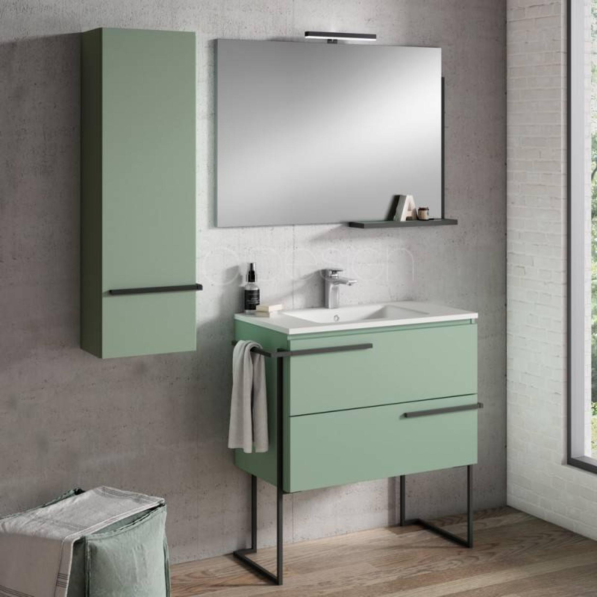 Les meubles sont déclinés en blanc texturé, en vert musgo ou quarzo.