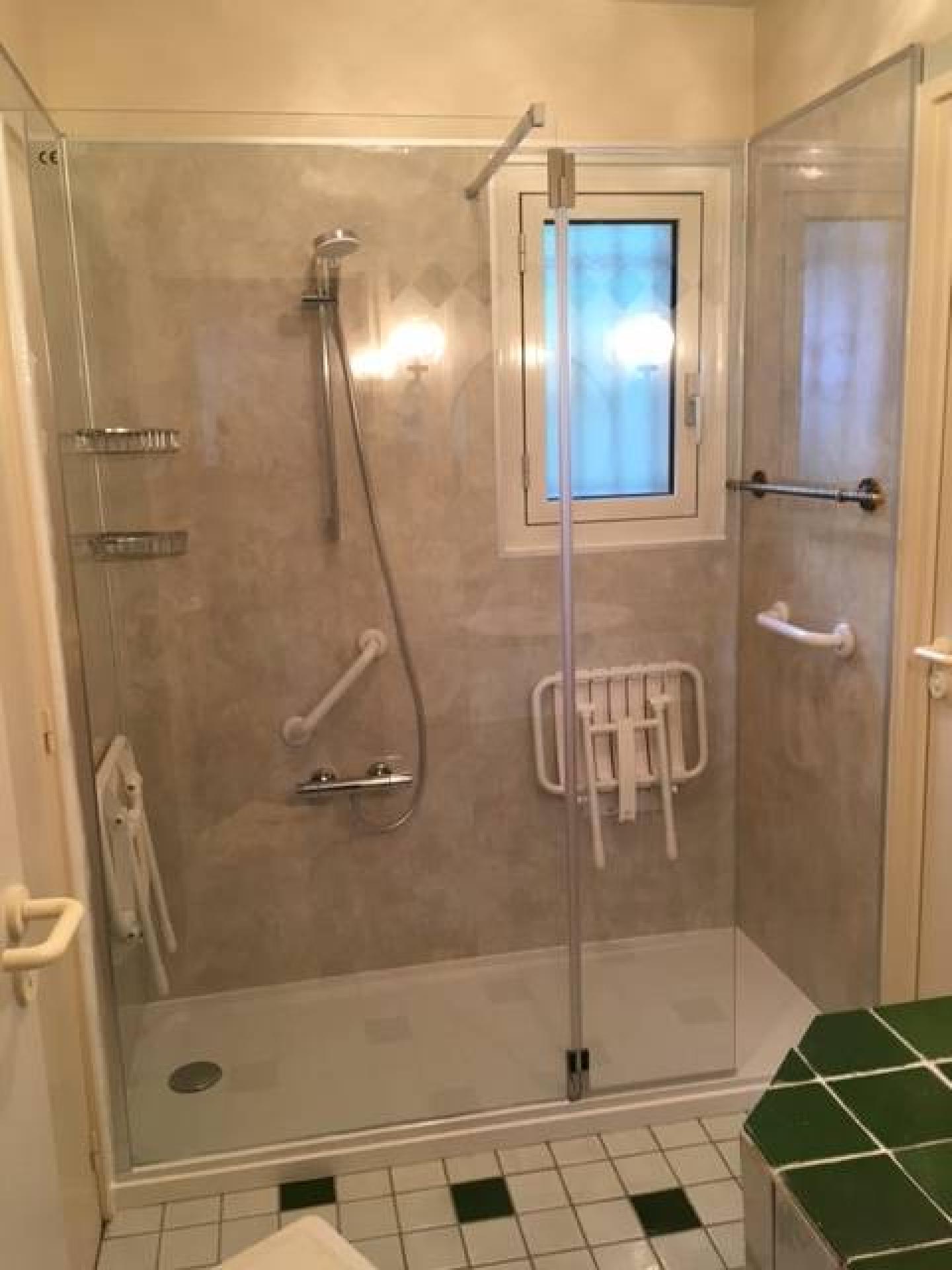 Notre douche sur mesure s'est parfaitement intégrée dans l'espace de la salle de bain de notre client. Les panneaux muraux de la marque Jacob DELAFON ont été installés sur une hauteur de deux mètres de haut autour de la douche sécurisée afin d'obtenir une étanchéité parfaite au vu de l'état de la faïence.