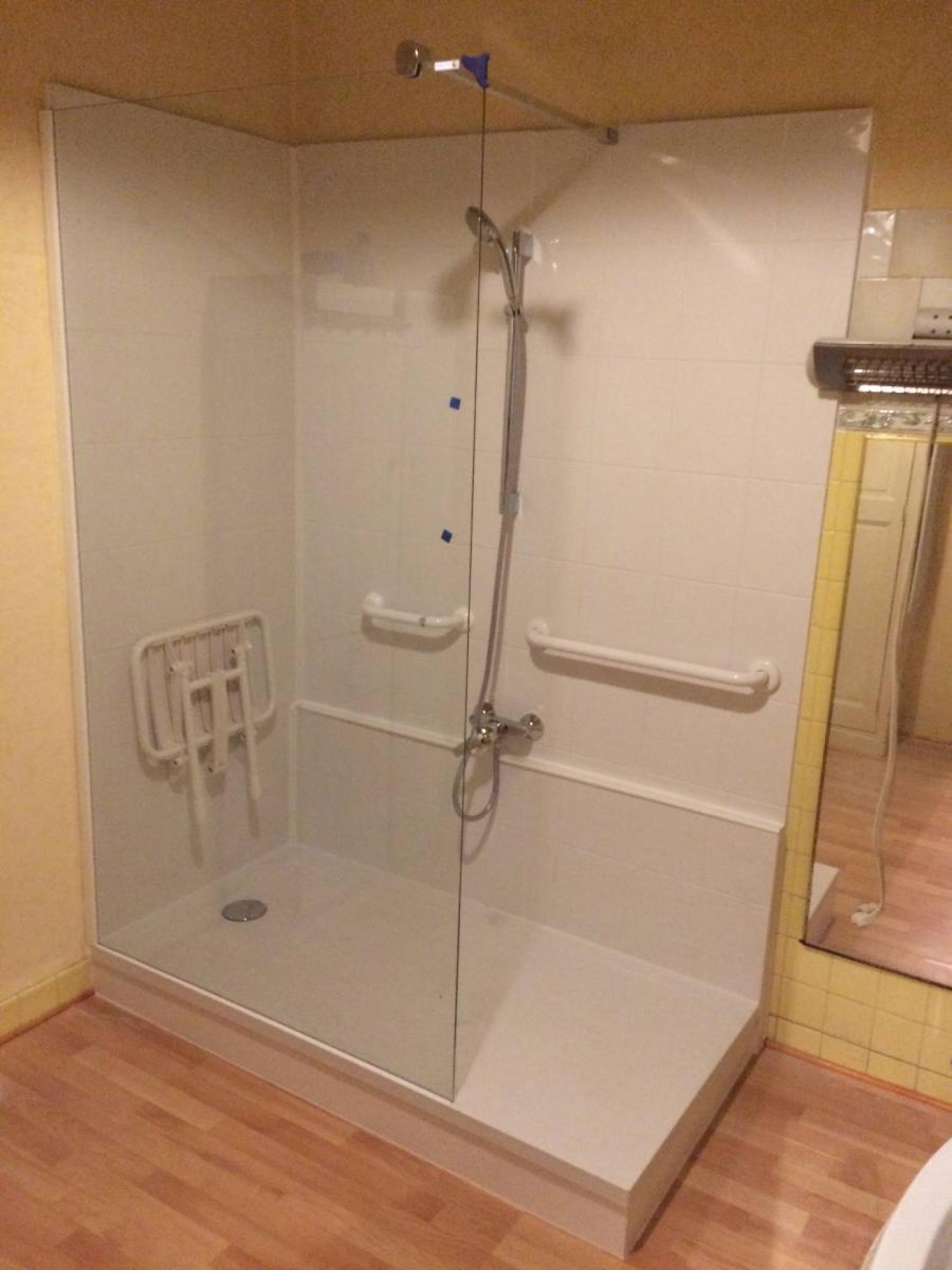 Notre douche sur mesure s'est parfaitement intégrée dans l'espace de la salle de bain de notre client. Les panneaux muraux de la marque Jacob DELAFON ont été installés sur une hauteur de deux mètres de haut autour de la douche sécurisée afin d'obtenir une étanchéité parfaite au vu de l'état de la faïence.